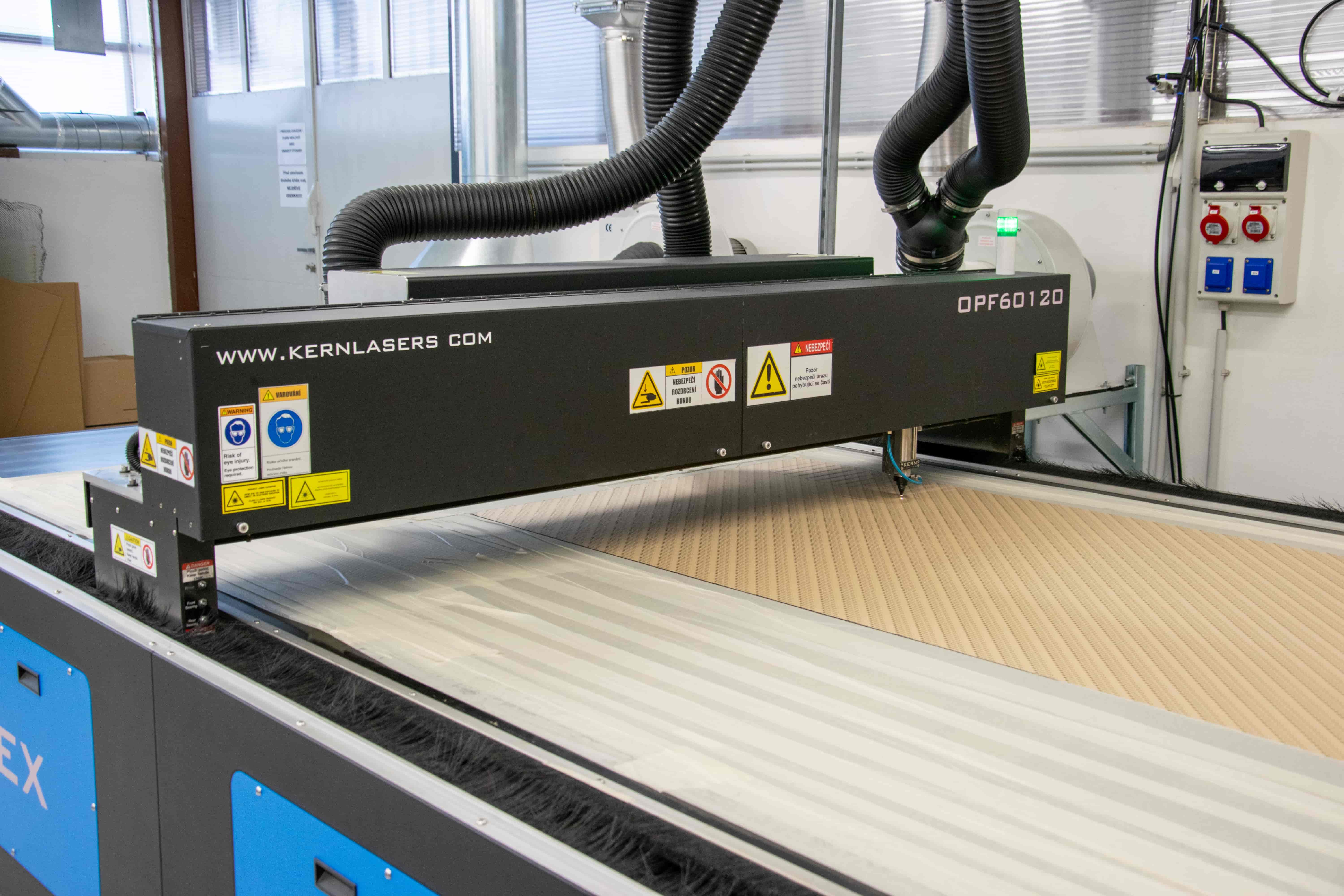 Řezání materiálů ja např. protiskluzné pásky nebo silnější plasty, které není možné řezat na plotrech nebo vysekávat výsekovými nástroji.