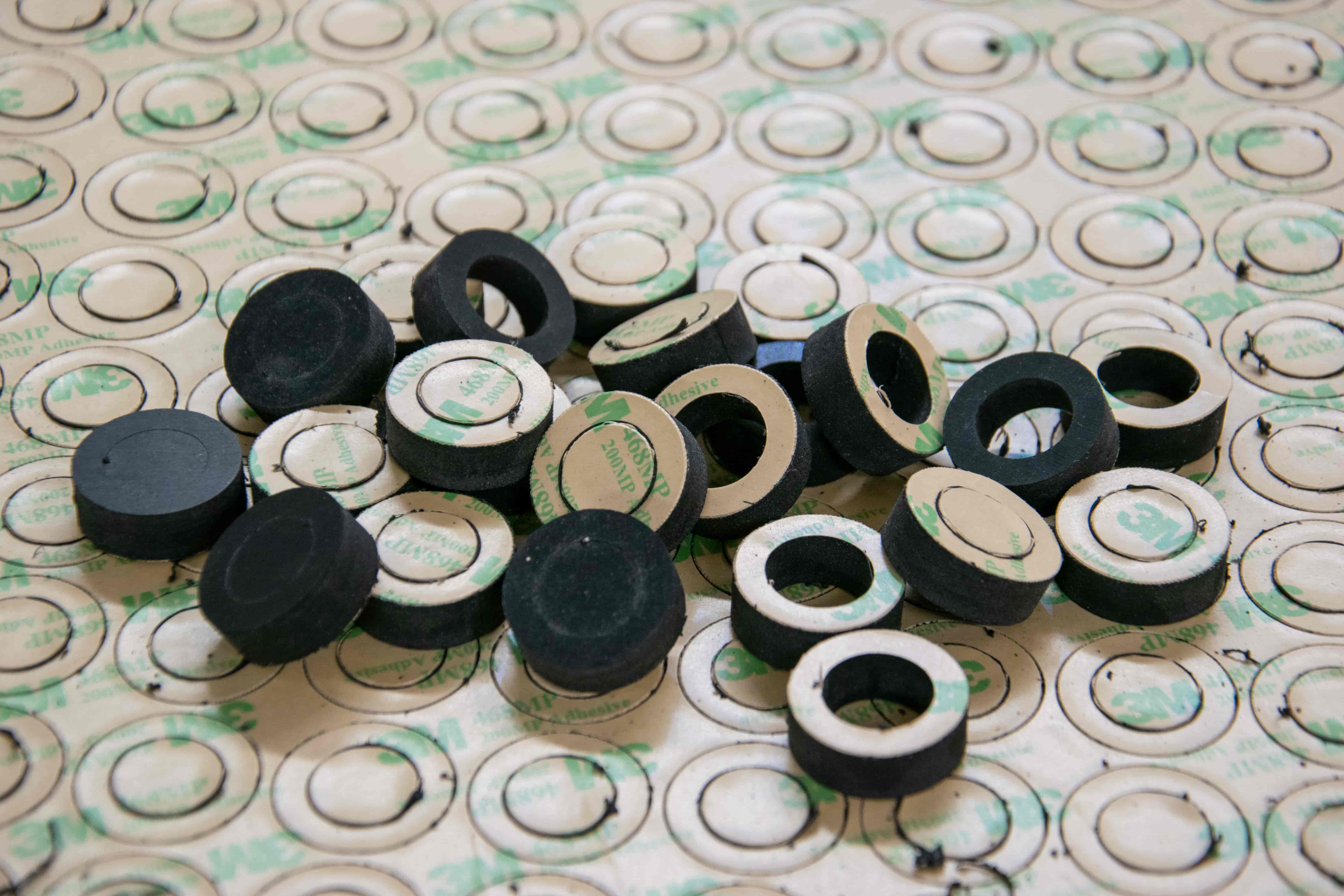 Při vysekávání dochází k proseknutí samotného materiálu i nosné vrstvy, kterou může být silikonový papír či fólie. Výrobu vysekáváním jsme schopni přizpůsobit povaze materiálu a také velikosti Vaší zakázky.